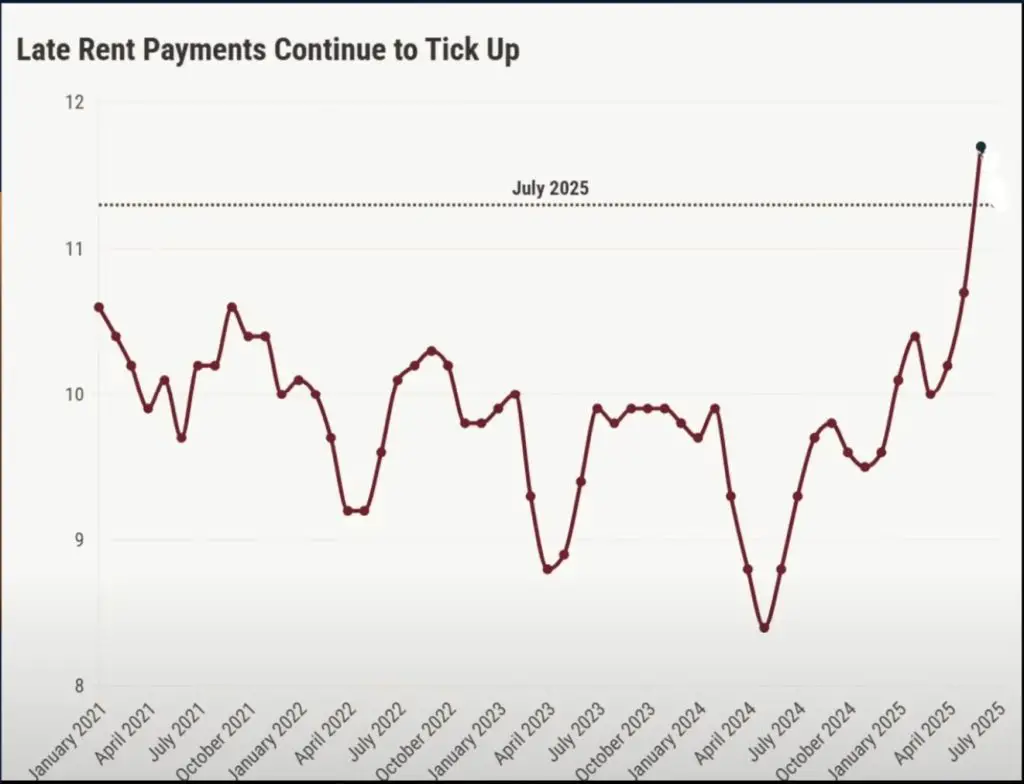 Debit: Of course, it’s not just homeowners with mortgages who are struggling to stay afloat financially – many renters find themselves drowning in a sea of red ink too. In fact, late payments by apartment renters have been steadily rising since April 2024. The good news is the stock market is still toying with new all-time highs almost every week! Then again, so is this: