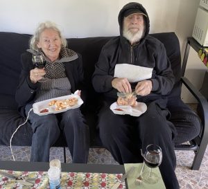 Grandfather is now 92 years old, in a wheelchair most of the time. Here he is with “latest” (chuckle) wife, Tatjana: