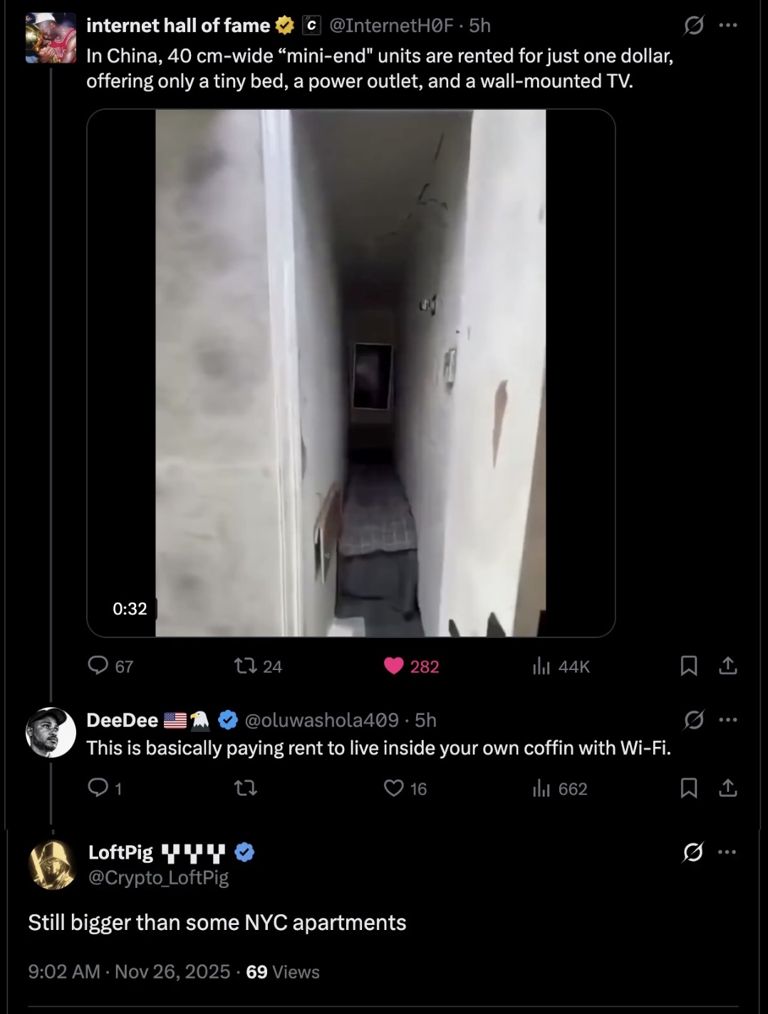 Credit: Did you see this? Although US rental prices climbed faster than paychecks in the aftermath of the pandemic, renters have reclaimed some ground this year because, in much of the country, rents are falling. As of the end of October, the median monthly rent on units with up to two bedrooms have fallen 1.7% year-over-year to $1696. That’s also down 3.6% from their 2022 peak. Now for the bad news: That still doesn’t mean that rents are affordable for many Americans. If you’re looking for that, then you’ll need to live in China…