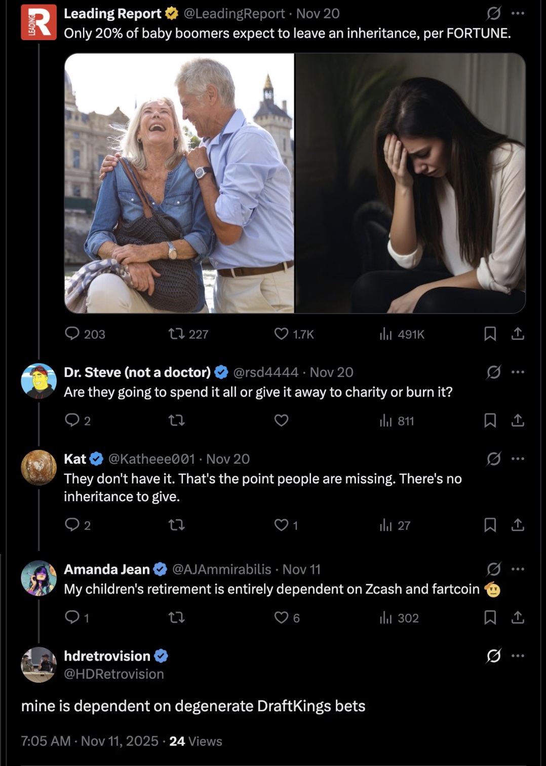 Credit: In other news, just 1 in 5 Baby Boomers expect to leave an inheritance, with the rest planning to spend their wealth during their lifetimes instead. Factors contributing to this trend include the desire to enjoy their money, high costs of living, inflation, and significant expenses related to healthcare and long-term care in retirement. The punchline? This contrasts with many younger generations who expect to receive an inheritance… of some kind.