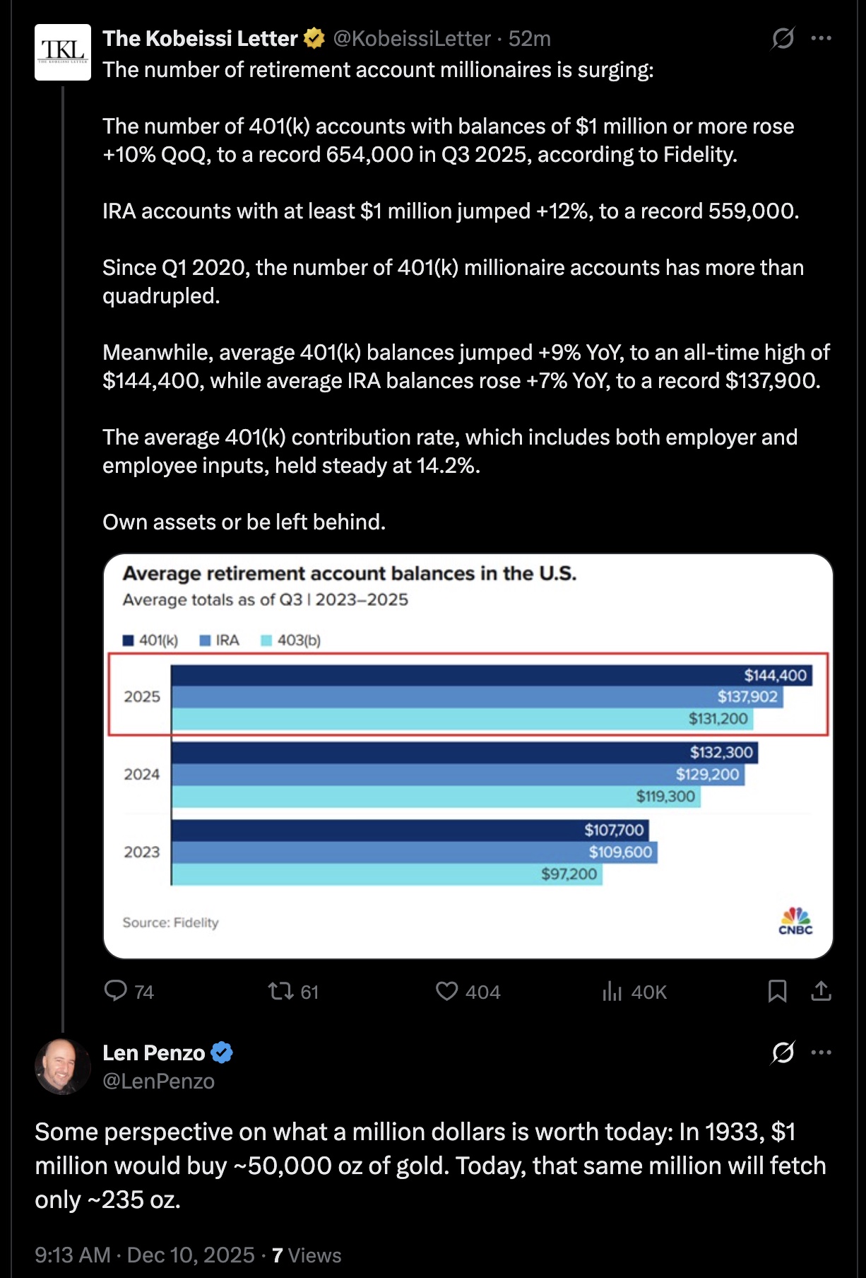 Credit: Meanwhile, enough capital has migrated into physical precious metals that silver, for instance, has increased in price by more than 100% in 2025. Gold’s up 62%. Remember, silver and gold are wealth insurance par excellence – not just colors for decorating your Christmas tree.