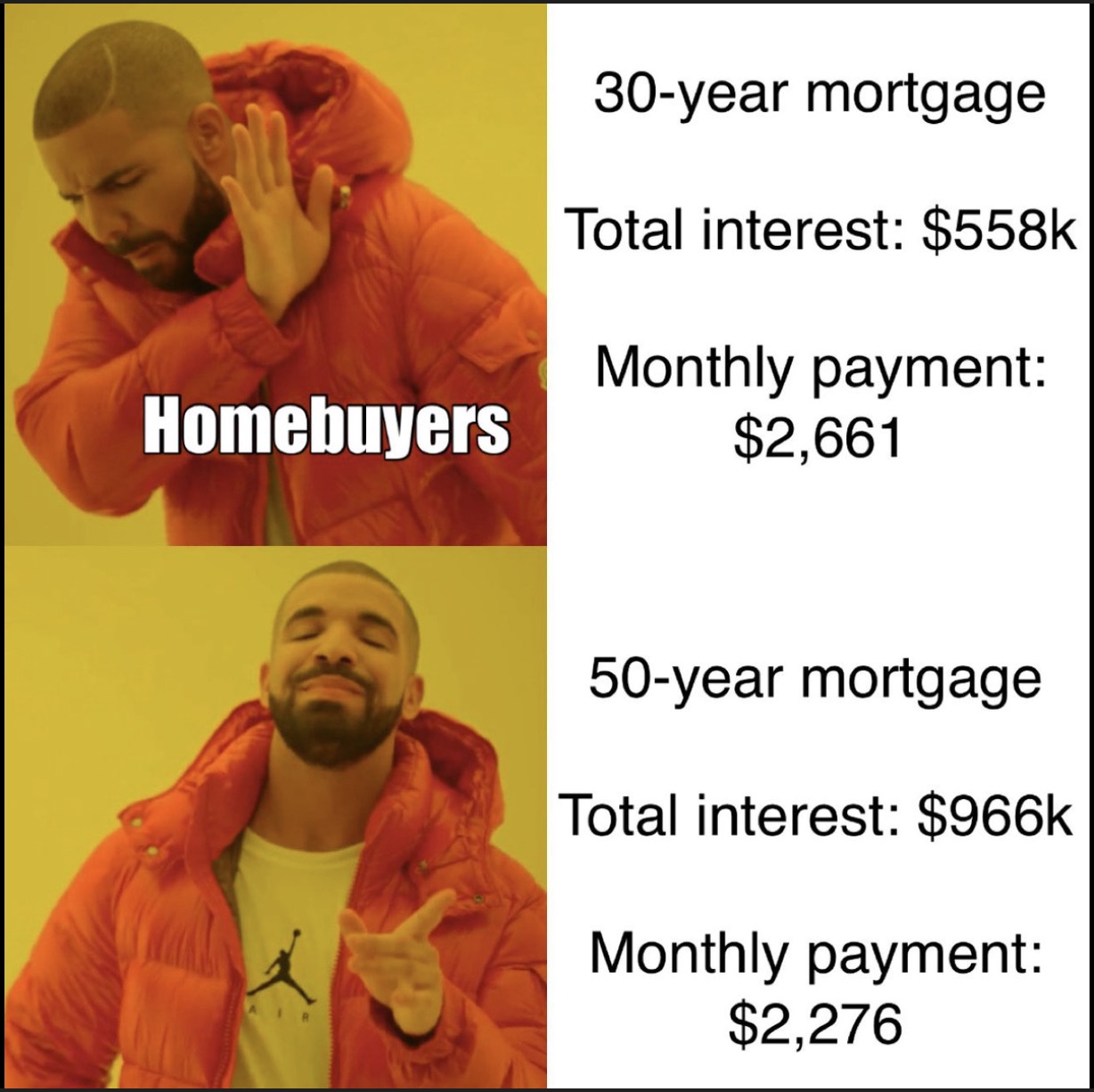 Credit: In other news, market conditions now favor homebuyers. In fact, home sellers are outnumbering buyers nationwide by 37% – that makes it the strongest buyers’ market since 2013. Now for the punchline: Despite these conditions, prospective homebuyers are exiting the market faster than sellers. As YahooFinance reports, “The shift underscores how small affordability gains aren’t enough to unfreeze a housing market where prices are more than 50% higher than pre-pandemic levels and mortgage rates are above 6%.” And, no, this isn’t the answer…